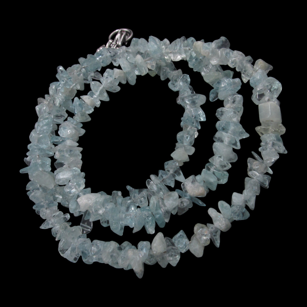 Természetes akvamarin ásványból készítettem splitter ( chips ) szemcse nyakláncot.