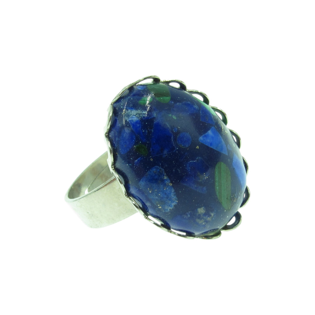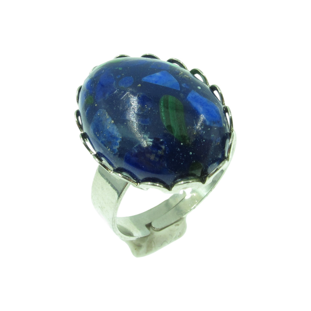 Természetes azurit–malachit köves állítható méretű gyűrű