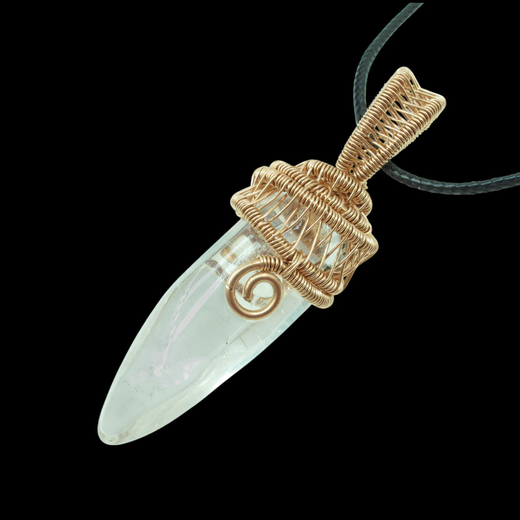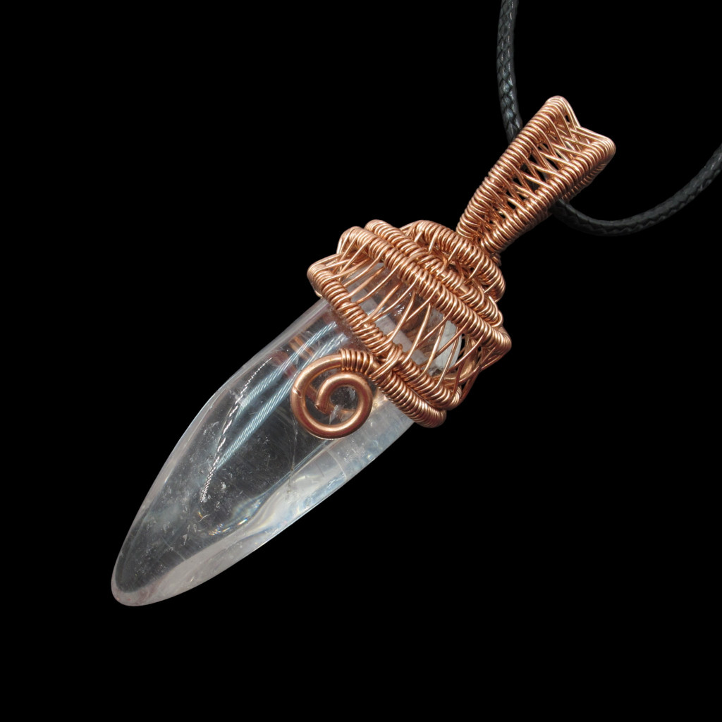 Hegyikristály csúcs réz drótba foglalva.