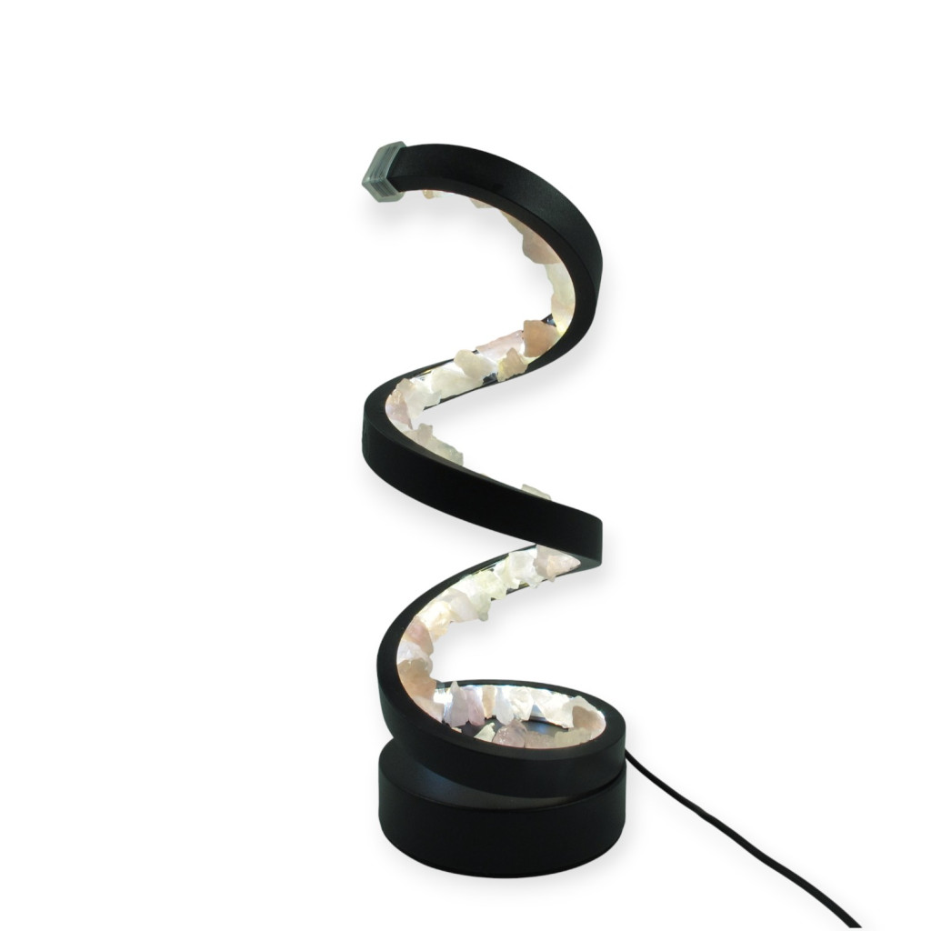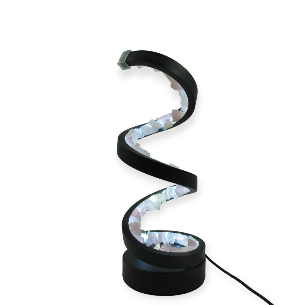 Spirál LED asztali lámpa természetes rózsakvarccal , mely a teret szeretet fényével ragyogja be.