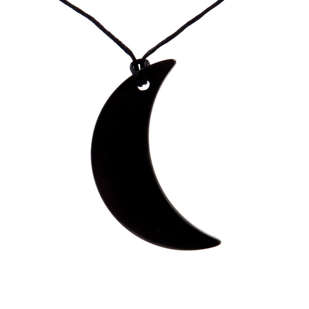 "Növő hold" forma shungit medál, pamut zsinóros nyakláncon.