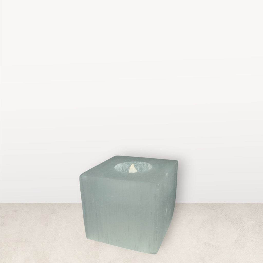 Ez a különleges teamécses tartó természetes szelenit ásványból készül, többféle csiszolási formában: finoman letisztult hengeres, hasáb, kocka, gömb, vagy természetesebb hatású kristályos megjelenéssel.