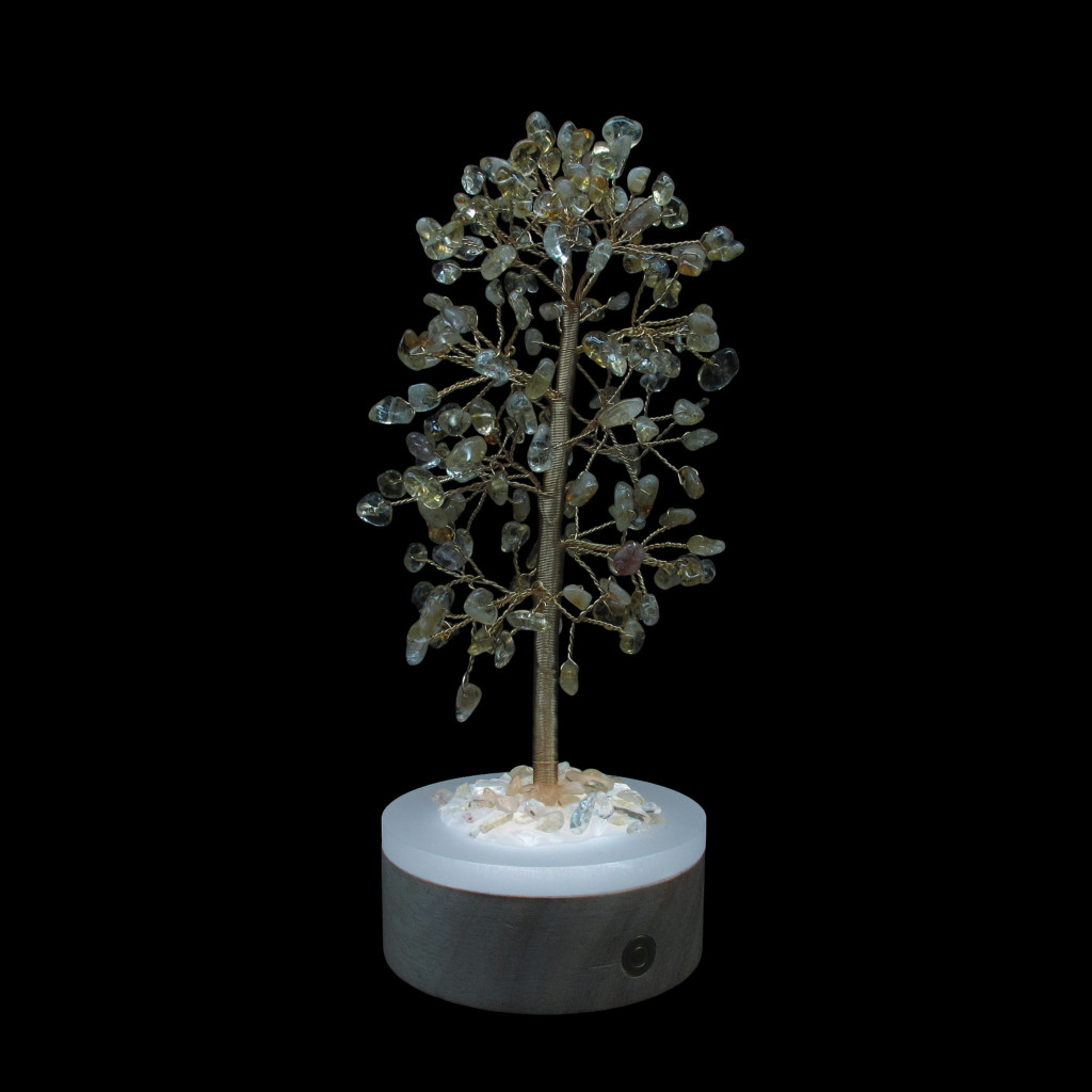 A fa törzsét és ágait hajlékony réz drót alkotja, mely gondos kézimunkával készült, míg a levelek szerepét természetes citrin kristályok töltik be.