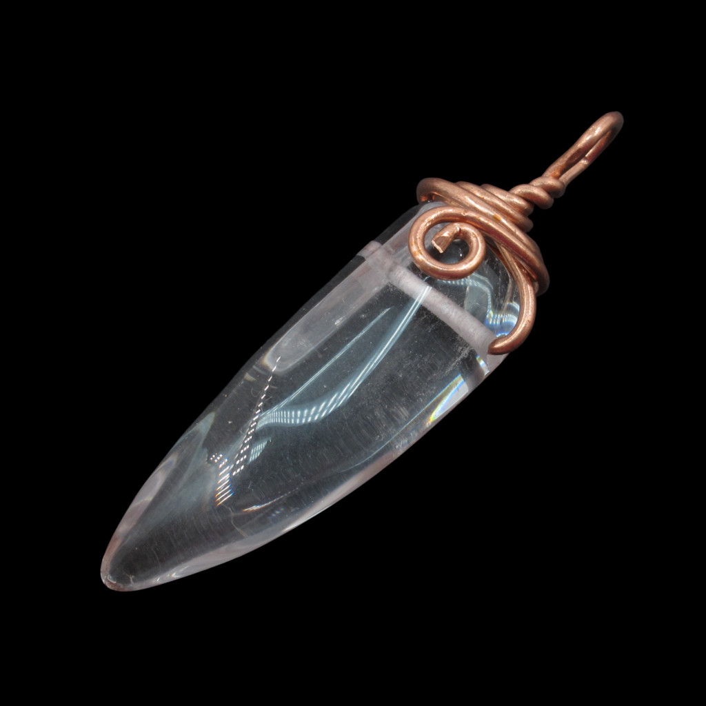 Réz drótba foglaltam ezt a fog alakú hegyikristály csúcsot, így a hegyikristály és a réz hatása is jótékonyan hat a szervezetre.