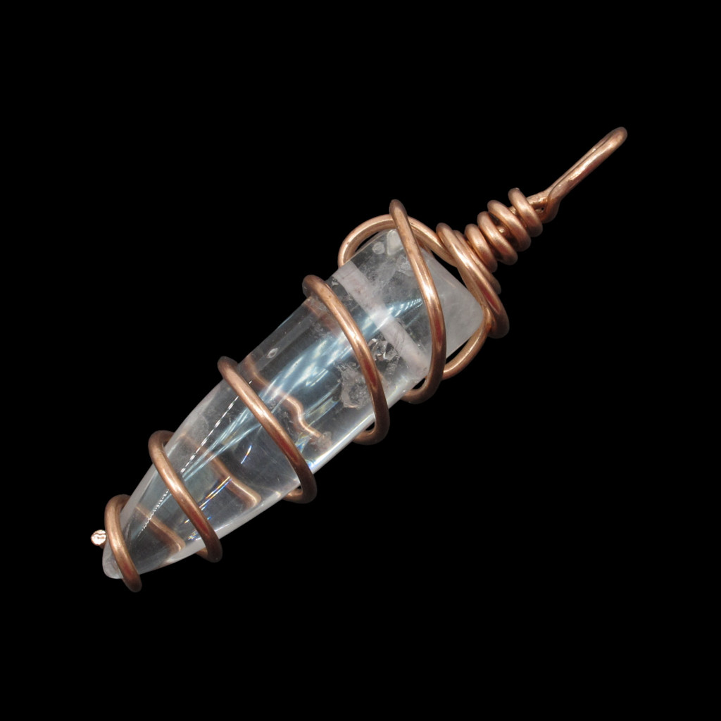 Réz drótba foglaltam ezt a fog alakú hegyikristály csúcsot, így a hegyikristály és a réz hatása is jótékonyan hat a szervezetre.